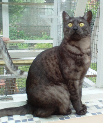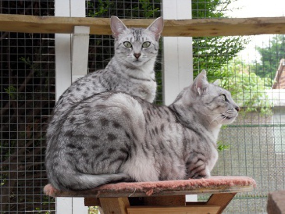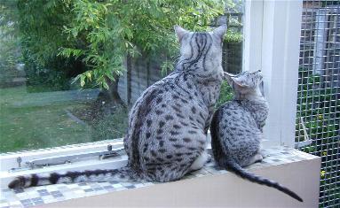 Kneazle & Aziza in their pen, now beautiful and mature cats May 2010